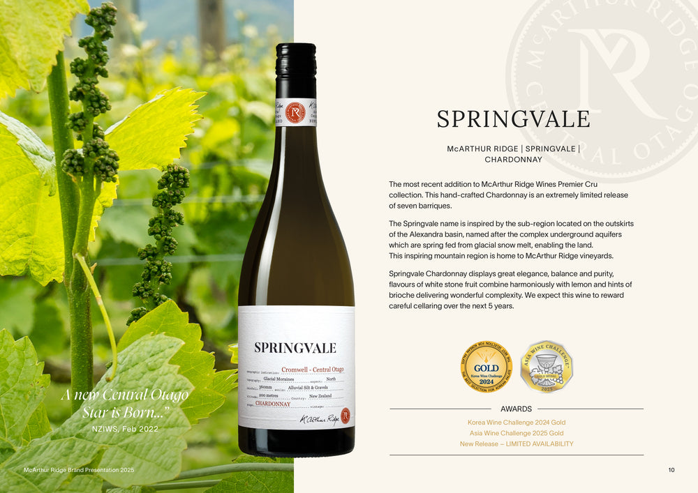 Springvale, a sub-region located on the outskirts of the Alexandra basin, named after the complex underground aquifers which are spring fed from glacial snow melt, enabling the land. This inspiring mountain region is home to McArthur Ridge vineyards.